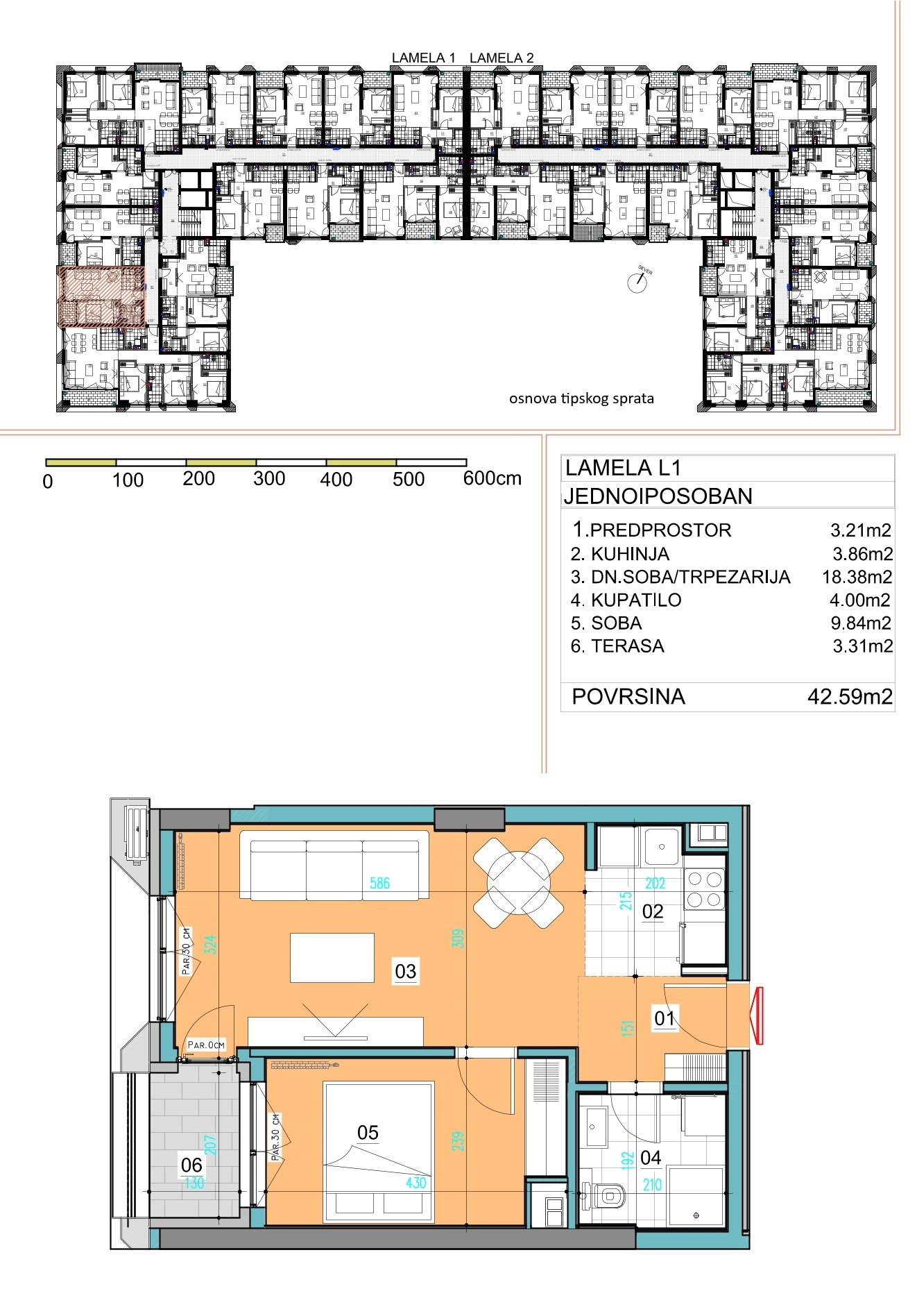 Površina 42,59m2